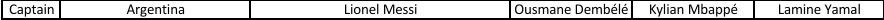 梅西的选择是登贝莱、姆巴佩和亚马尔。
