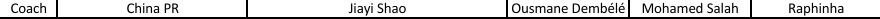 邵佳一的选择是登贝莱、萨拉赫、拉菲尼亚。