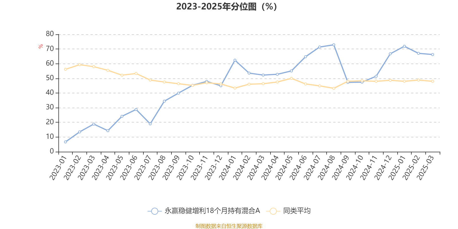 通过所选区间该基金净值增长率分位图,可以观察该基金与同类基金业绩比较情况。图为坐标原点到区间内某时点的净值增长率在同类基金中的分位数。